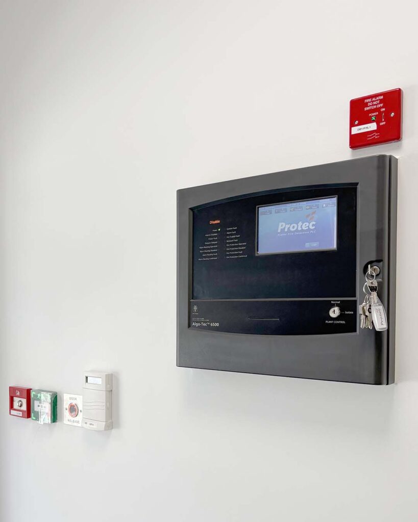 The building is protected by a newly installed, fully addressable fire alarm system offering complete coverage in accordance with fire safety design requirements.